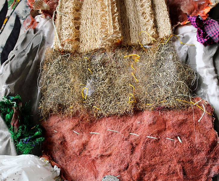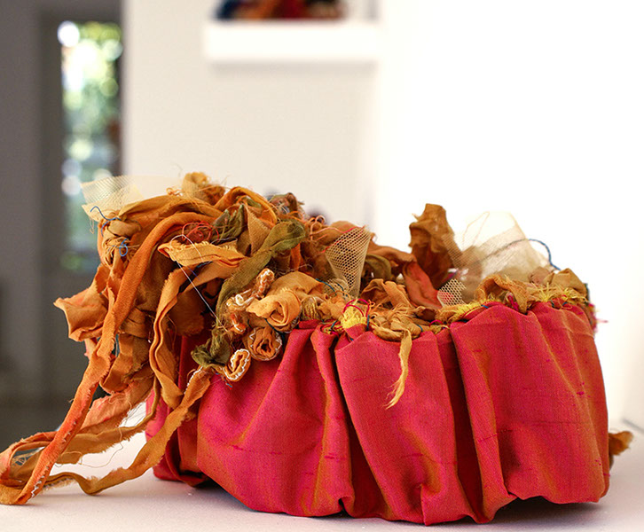 Silk, cotton, wire, ribbon, plastic, canvas, metal, loofah