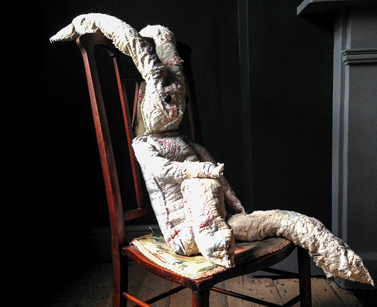 Rabbit in Sheep’s Clothing. Glass, rabbit fur & sheep’s wool